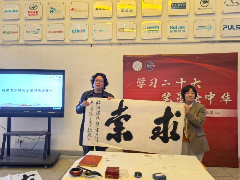 开幕式后,在场师生一同观展,大家一致表示,文化的传播和民族精神的延续,都是需要一代代的文人墨客、能工巧匠接续完成的历史使命。作为“芯青年”,我们在学习之余不要忘却诗和远方,拿得起芯片烙铁,也写得下四季芳华,用手中的笔讲好中国故事,传播好中国声音。