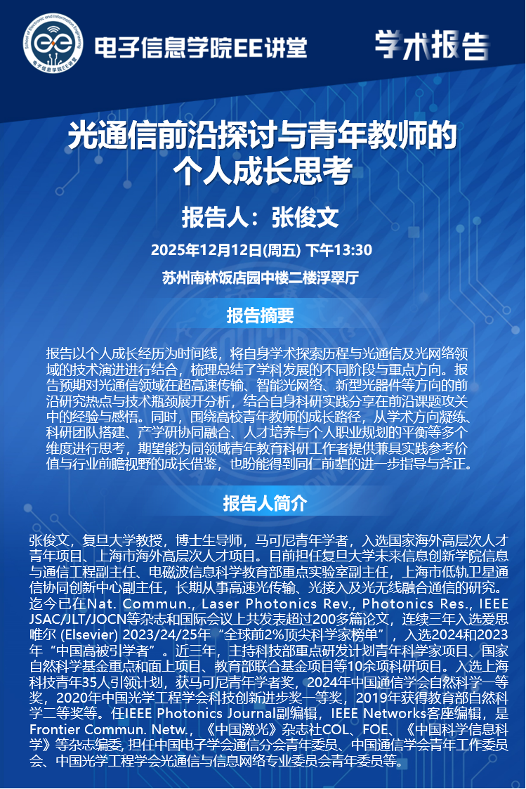 【学术报告】光通信前沿探讨与青年教师的个人成长思考
