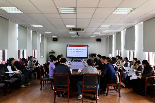 沈纲祥围绕学科、学位点与本科专业一体化建设作专题汇报。他系统阐述了学科整体布局、师资队伍建设、人才培养体系、科研平台支撑及近五年标志性成果,深入研判学科发展态势,剖析优势特色与短板弱项,并从重点发展方向、结构布局优化、资源配置机制、招生规模与成果产出、校院协同联动等方面,提出了下一步工作思路与推进举措。